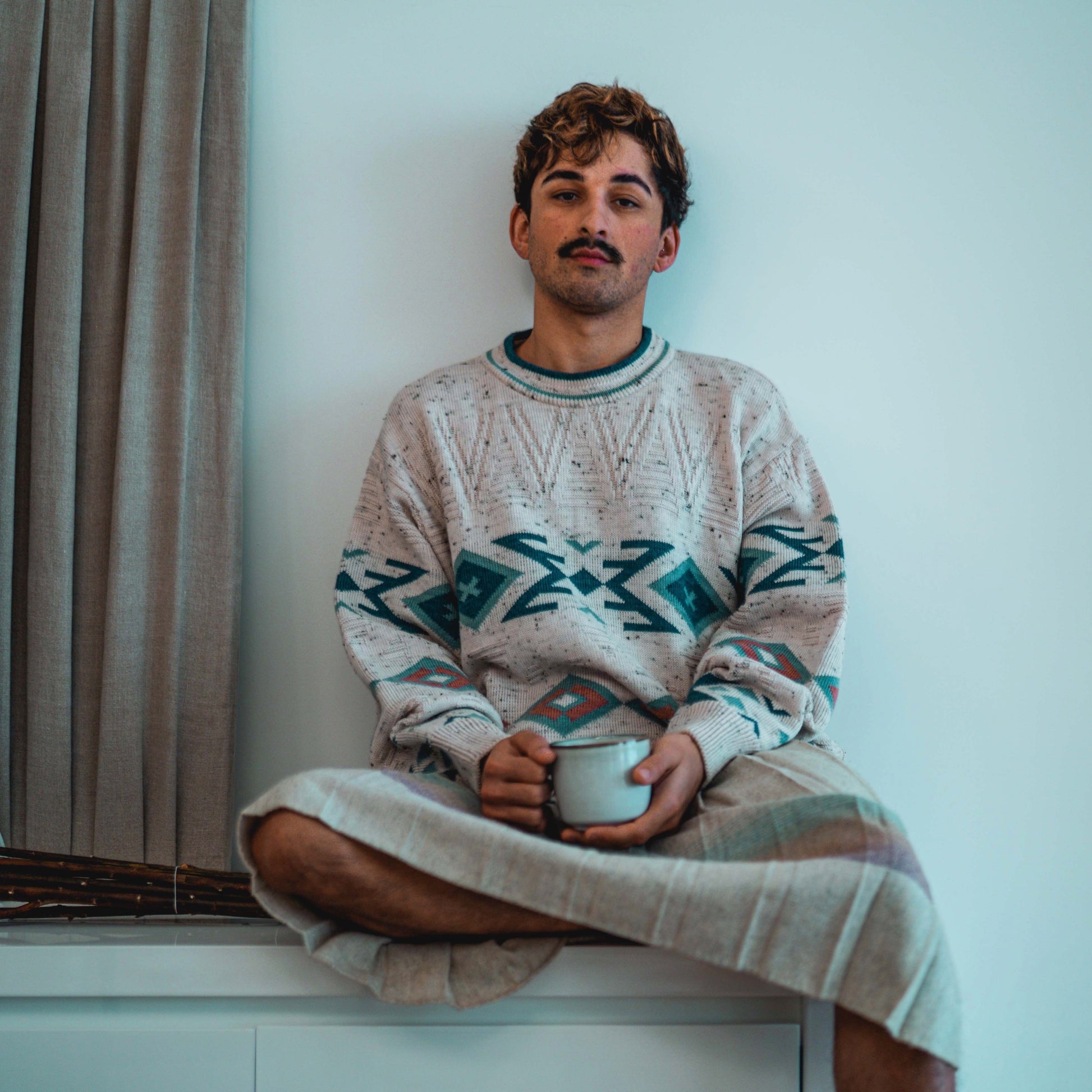 DESCRIPTION: Oat and Pastel Woven Aztec print pullover