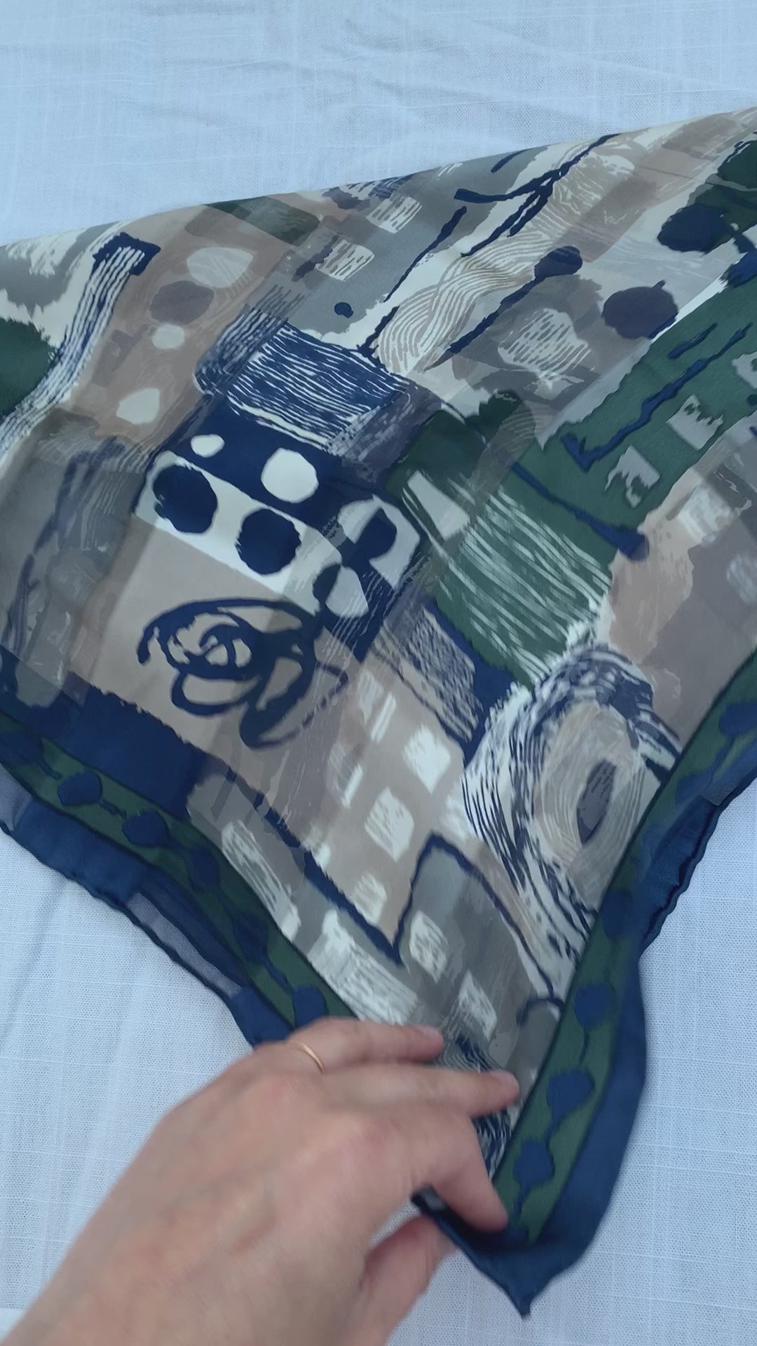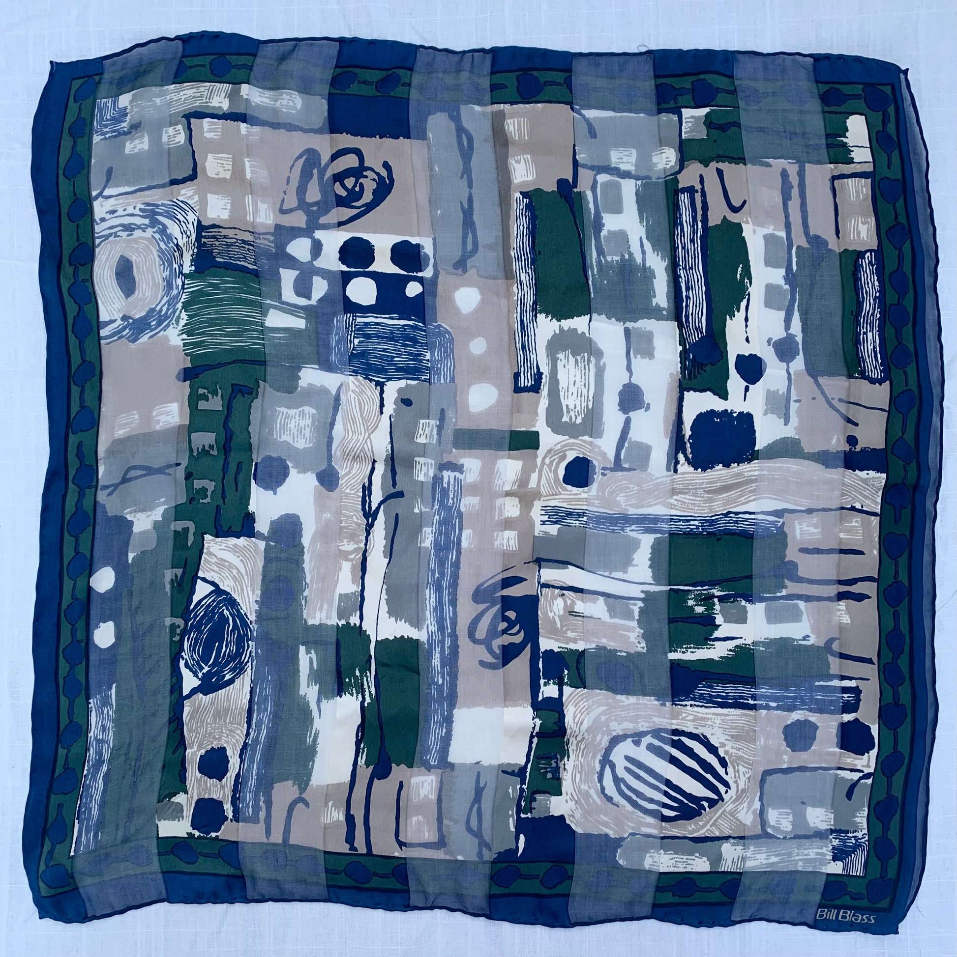 1980s abstract graphic sheer silk pocket square by the infamous Bill Blass, hand rolled edges