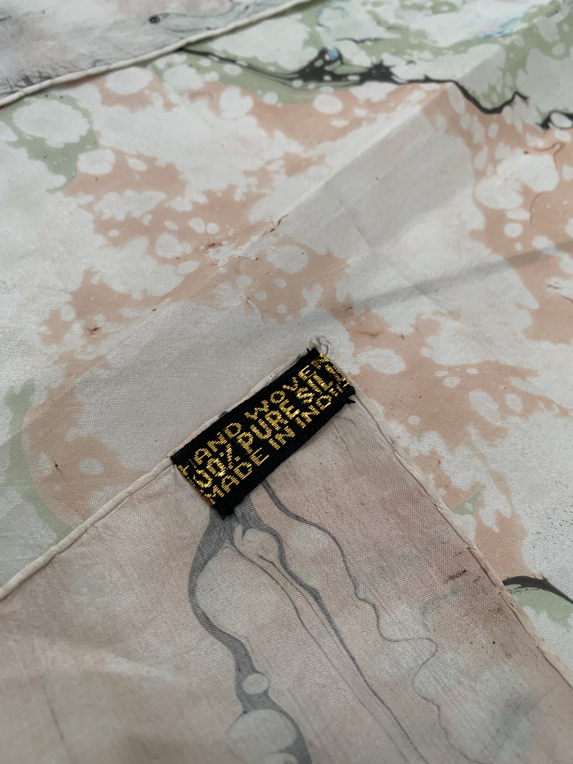 Hand Woven pure Indian silk, Screen Printed, hand rolled edges, paper thin