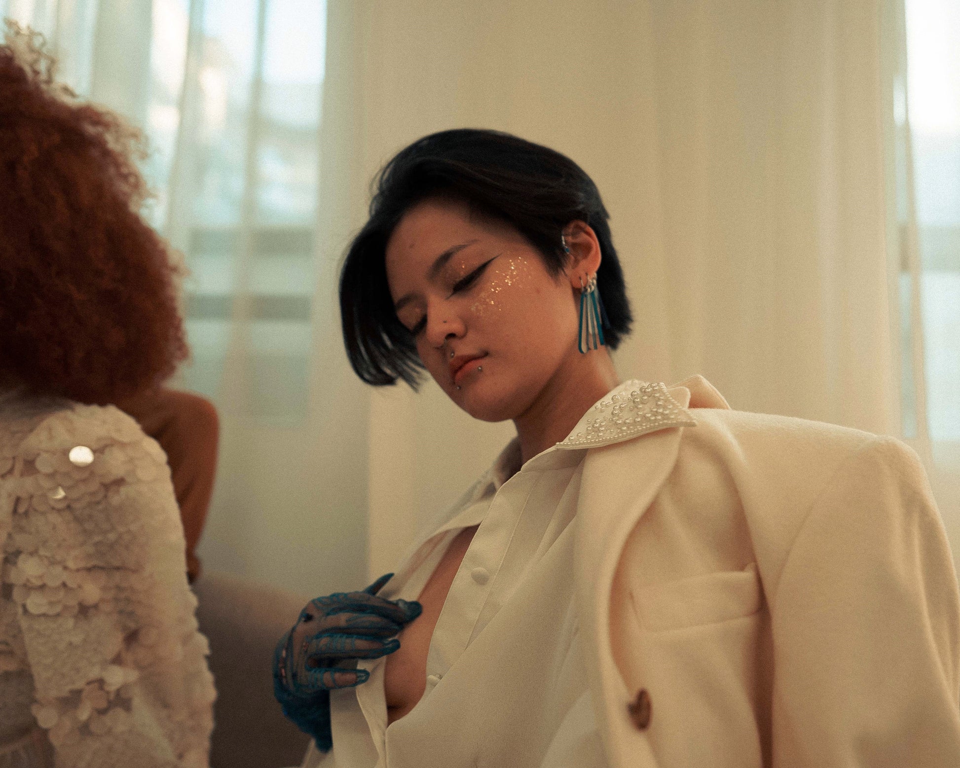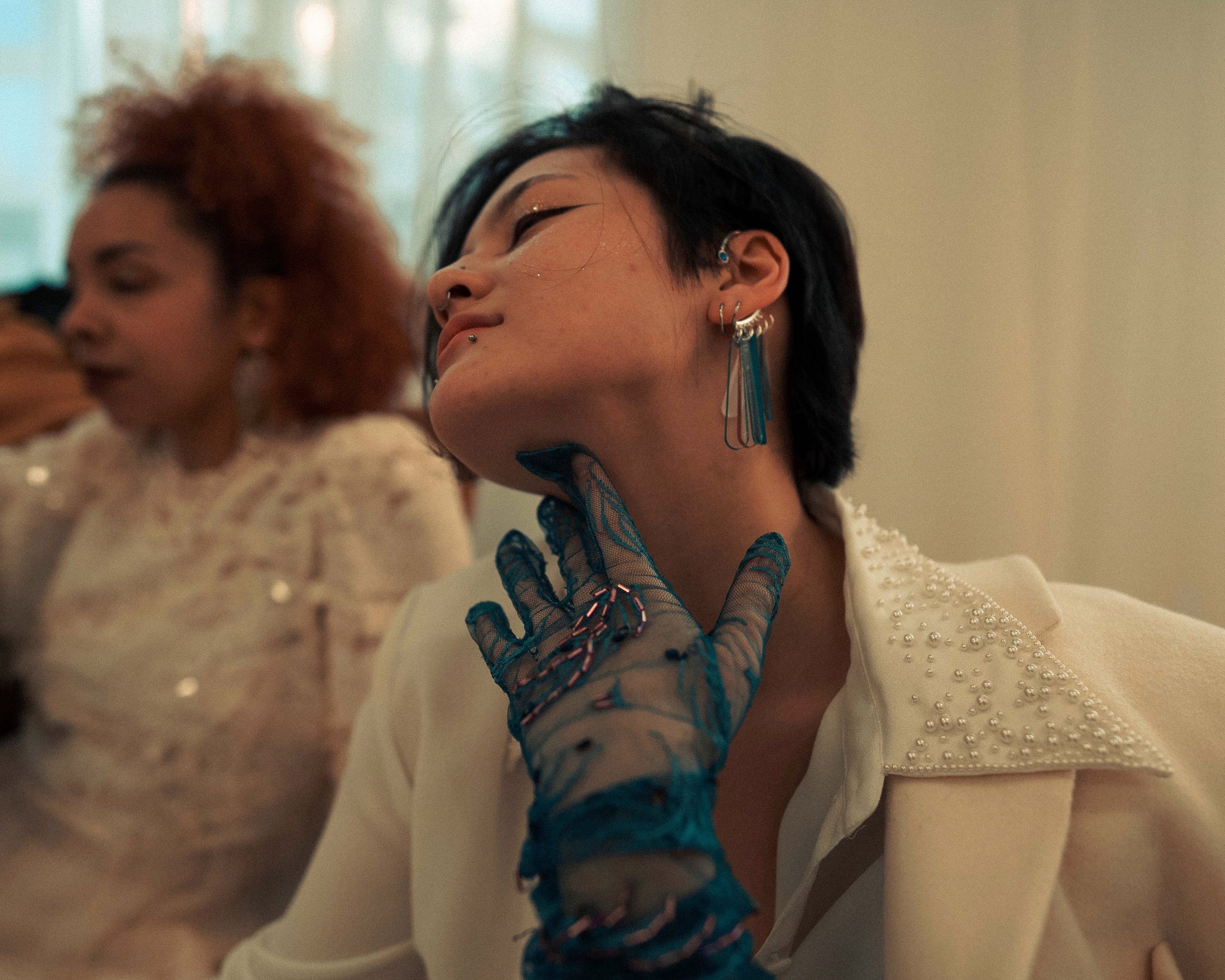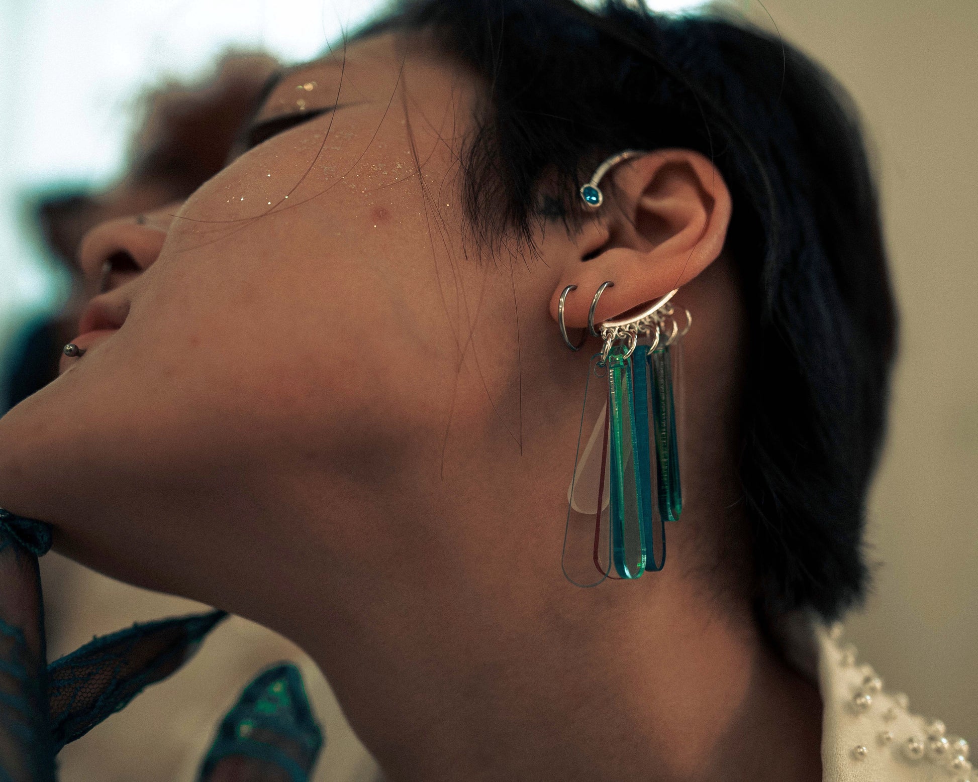 This Blue Swarovski crystal ear cuff is Handmade by local Toronto Artist Nina Spade Studios.