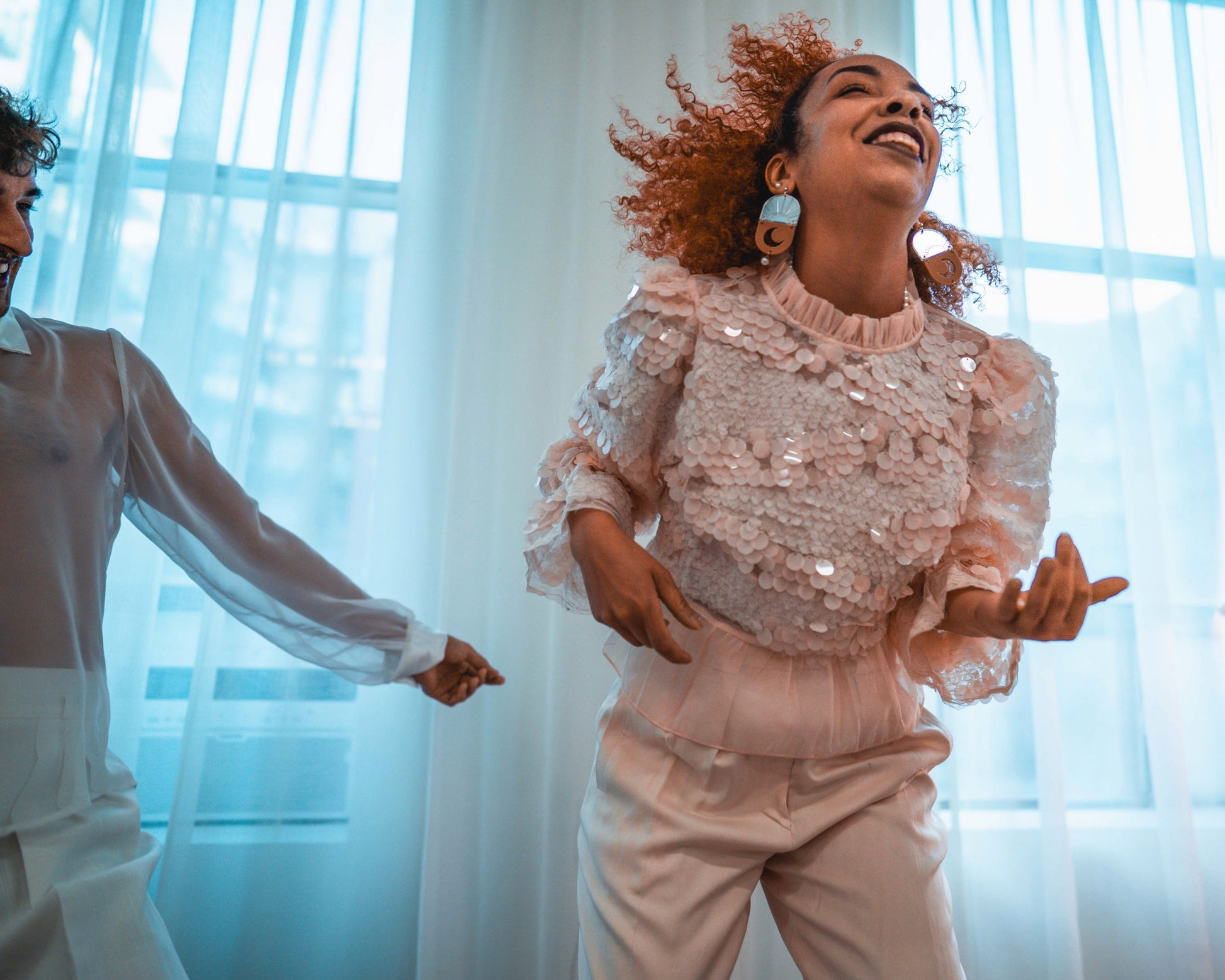 DESCRIPTION: Blush Sequin puff shoulder blouse